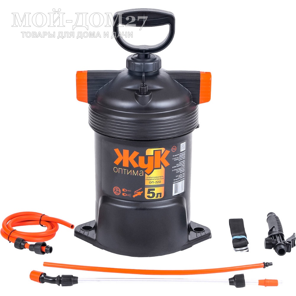 Брандспойт: стеклопластиковый нетелескопический (650 мм) возможность использовать опрыскиватель как для защиты растений от вредителей, так и для полива (от струи до тумана).
