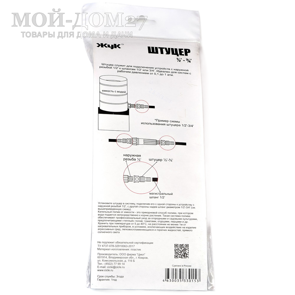 Штуцер для шлангов "ЖУК" 1/2 и 3/4 - универсальное приспособление для полива оборудованное штуцером, может использоваться с разными шлангами.