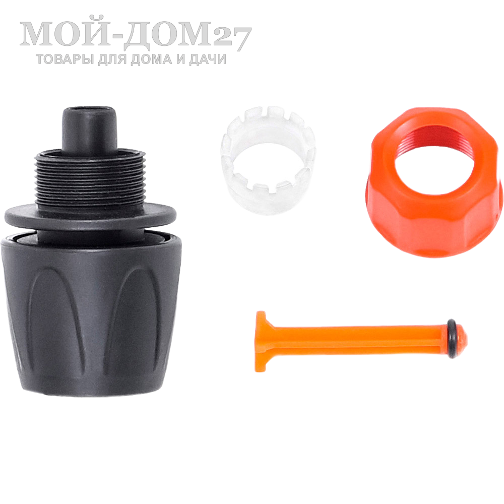 - Коннектор надежно закрепляется на шланге.