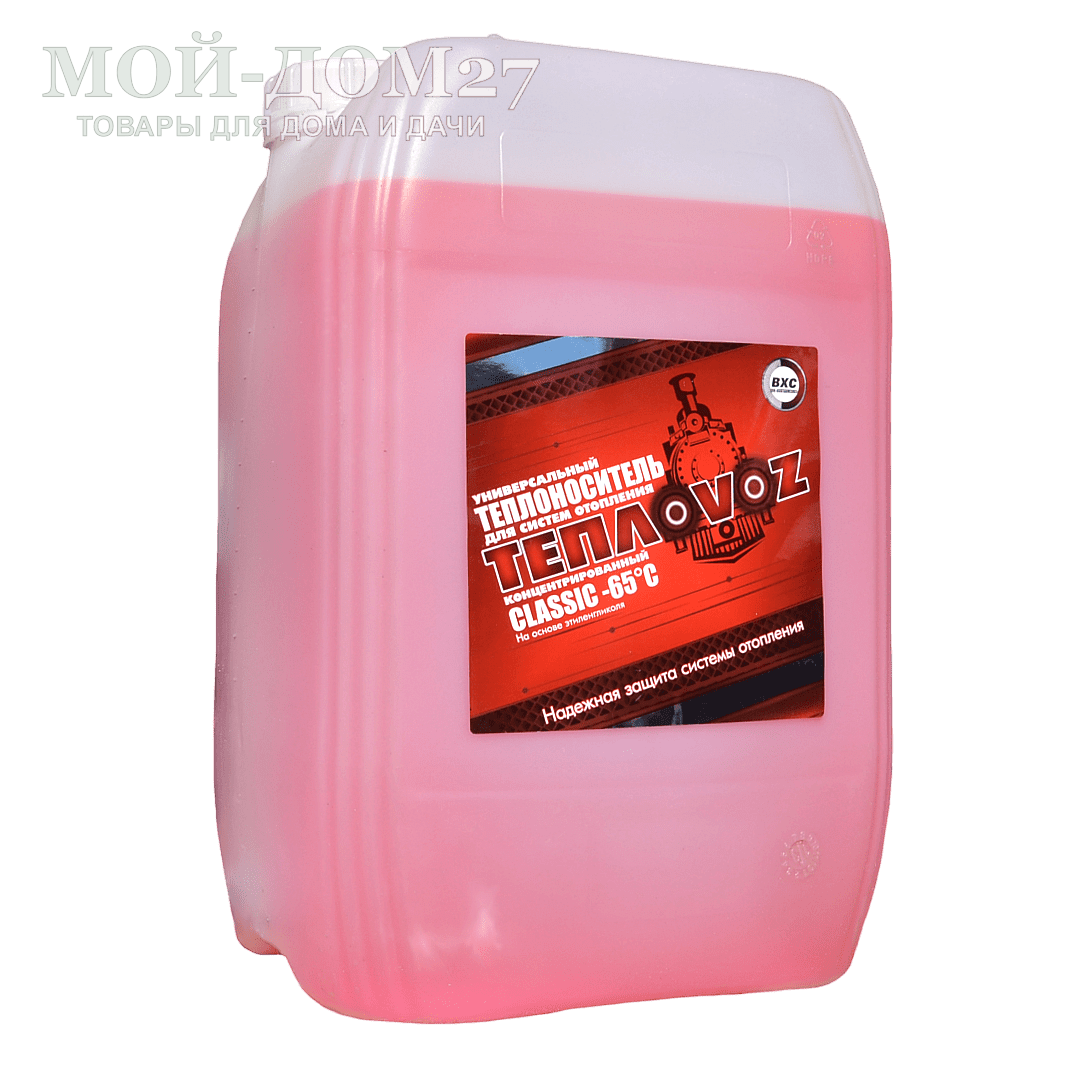 Незамерзающий теплоноситель предназначен для использования в системах отопления, вентиляции и кондиционирования. Бытовой антифриз состоит из водного раствора этиленгликоля и специального пакета присадок. Теплоноситель обеспечивает эффективную работу систем отопления в диапазоне от «минус» 65°С до «плюс» 110°С градусов.