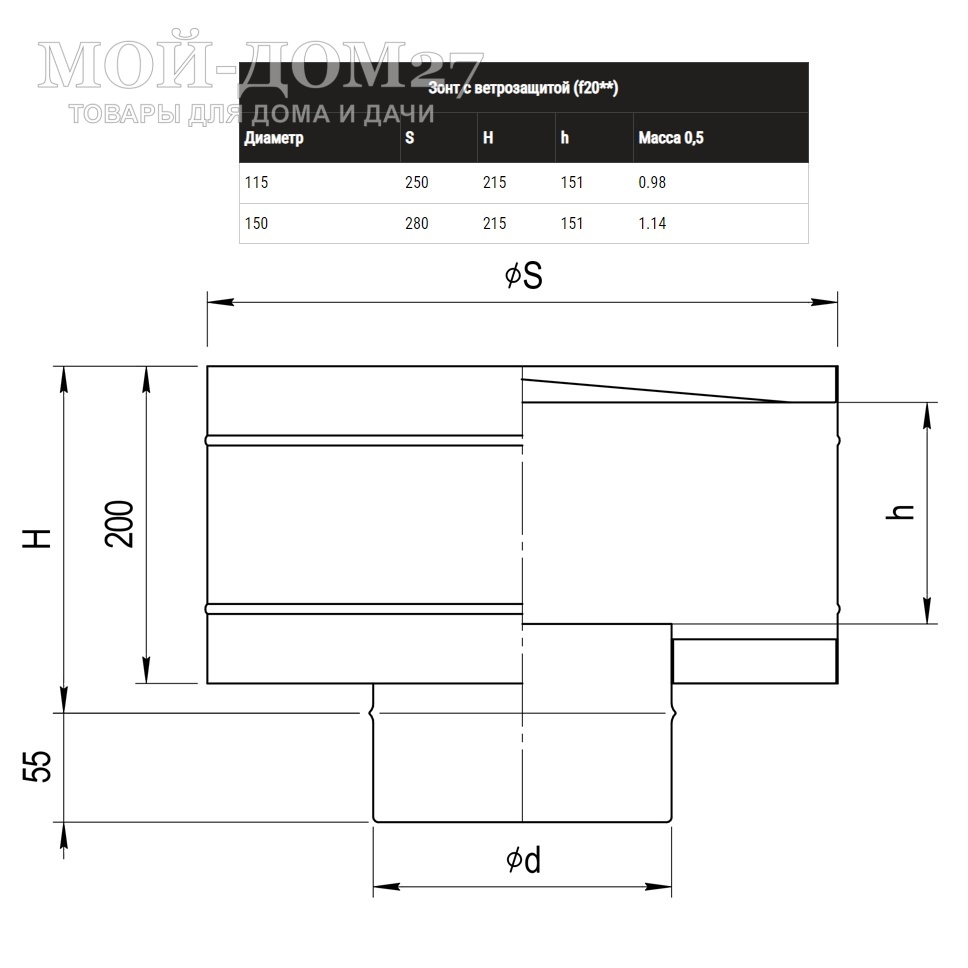 Зонт является завершающим элементом дымового канала, используется для предохранения одностенного дымохода от атмосферных осадков. Зонт-К D-150 применяется при сборке дымохода "по конденсату". Зонт-К совместно с Конус D-150х210 можно применять для сэндвичей.