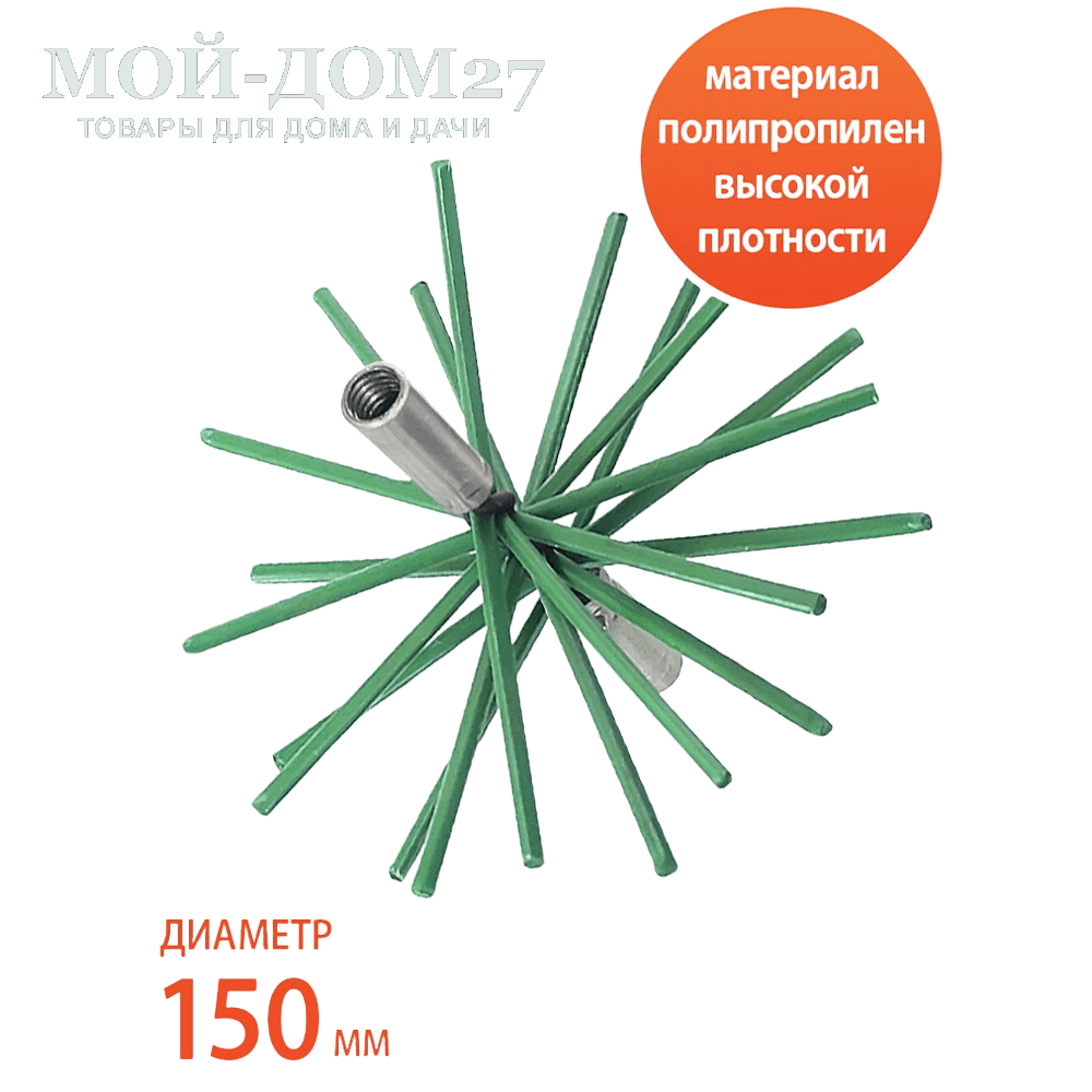 Ёрш из плотных полипропиленовых стержней эффективно удаляет любые отложения на стенках труб, даже застарелые и твердые.