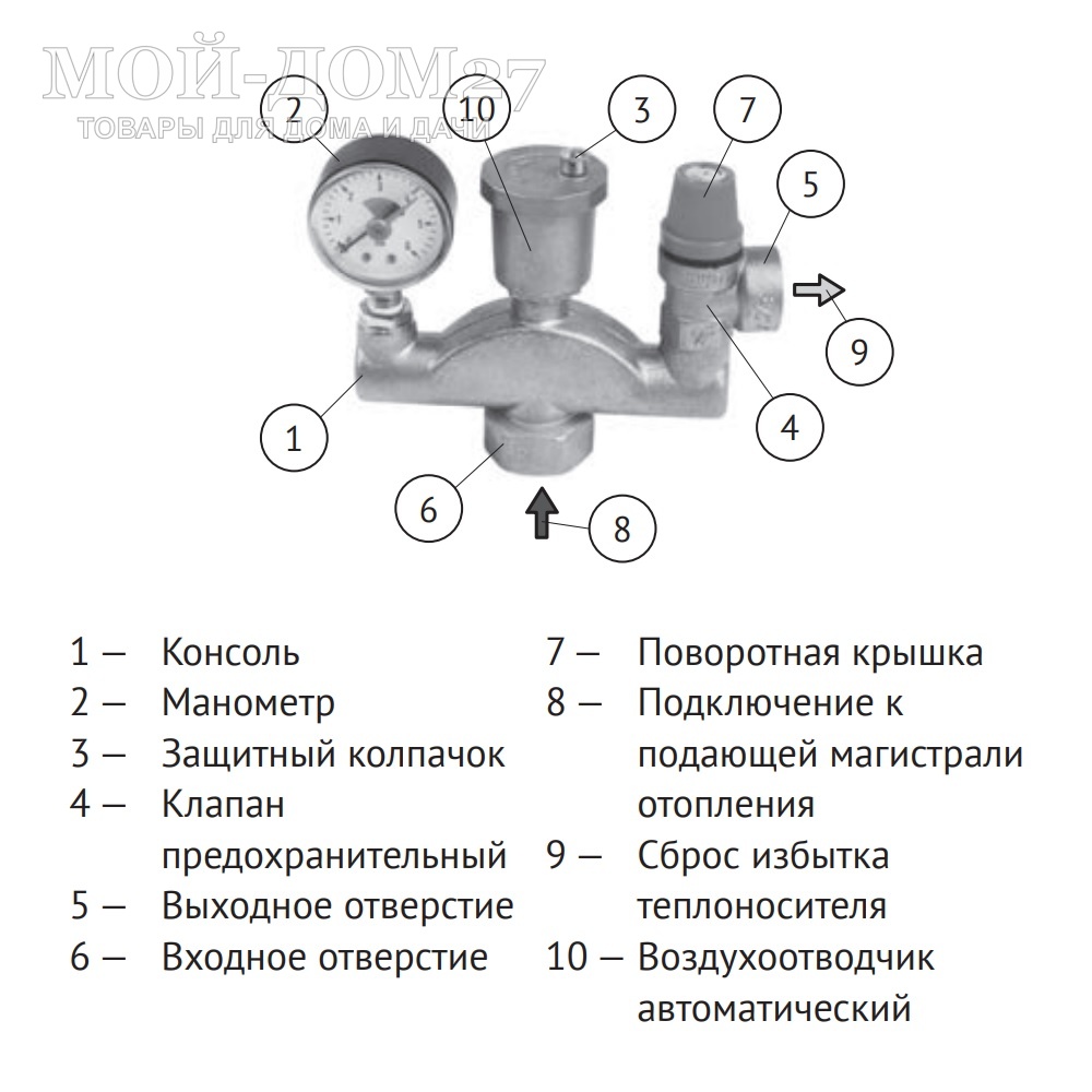 - Предохранительный клапан.