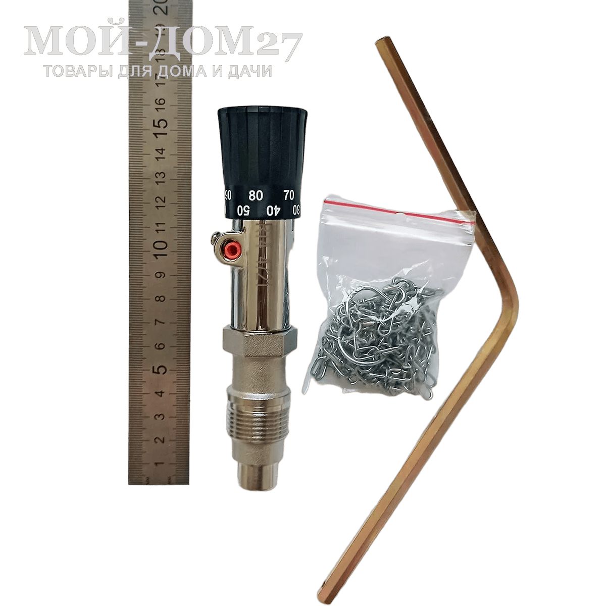 Конструктивно агрегат представляет собой небольшой поплавок, который привязан к металлической цепочке. Так что регулировка регулятора тяги твердотопливного котла осуществляется в буквальном смысле одним движением руки. Механизм довольно чувствительно реагирует на любые изменения положения, так что нужно пользоваться ним очень аккуратно.