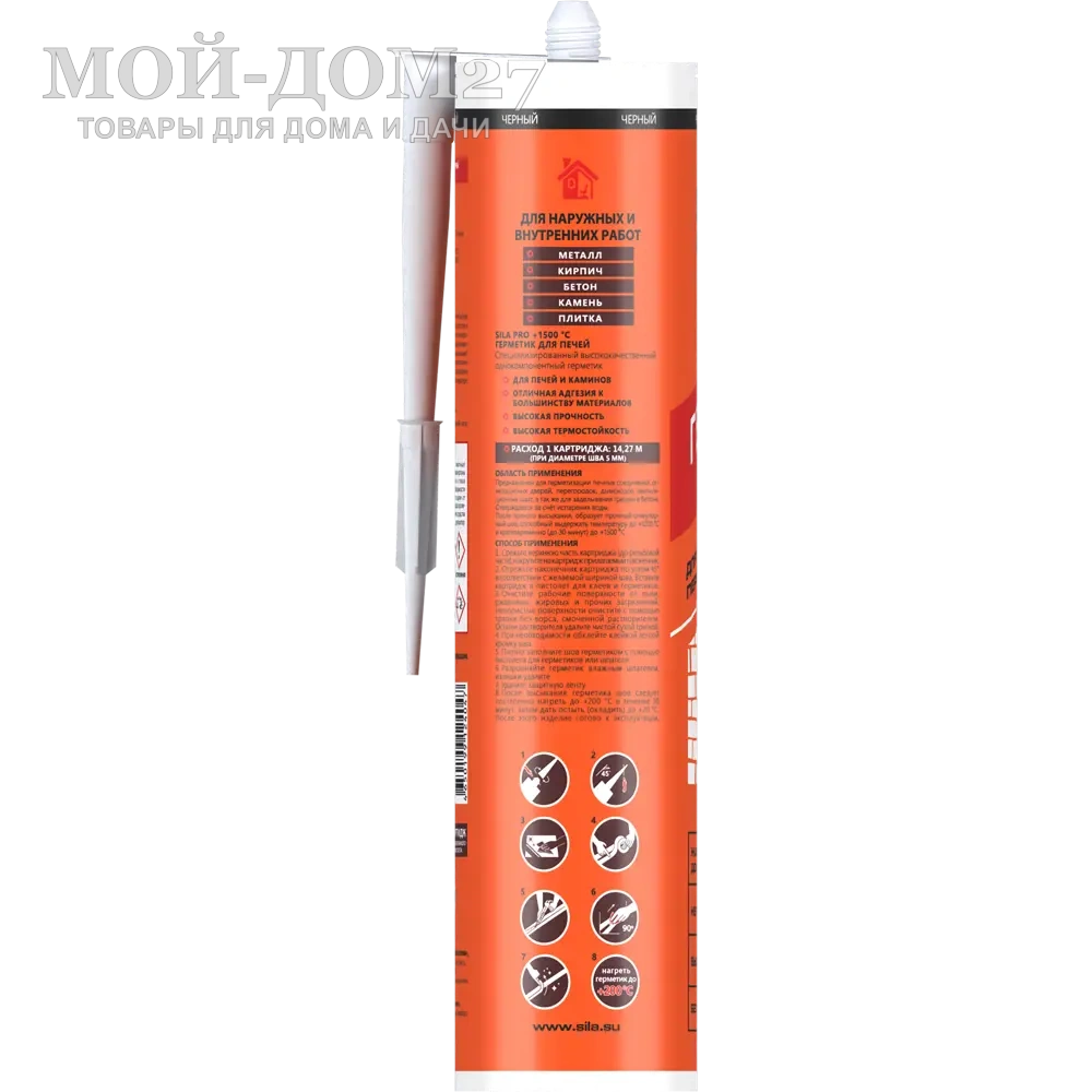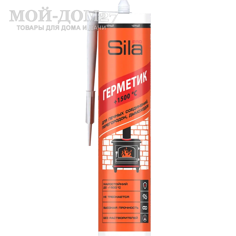 SILA PRO MAX SEALANT +1500°C – жаростойкий силикатный герметик для герметизации печных соединений, огнезащитных дверей, перегородок, дымоходов, вентиляционных шахт, а также для заделывания трещин в бетоне. Отверждается за счёт испарения воды. После полного высыхания, образует прочный огнеупорный жесткий шов, способный выдержать температуру до +1200 °С и кратковременно (до 30 минут) до +1500 °С. Используя огнеупорный герметик Sila PRO Max Sealant +1500°C, вы получите хорошую тягу в дымоходе и надежную защиту помещения от проникновения дыма и угарного газа.