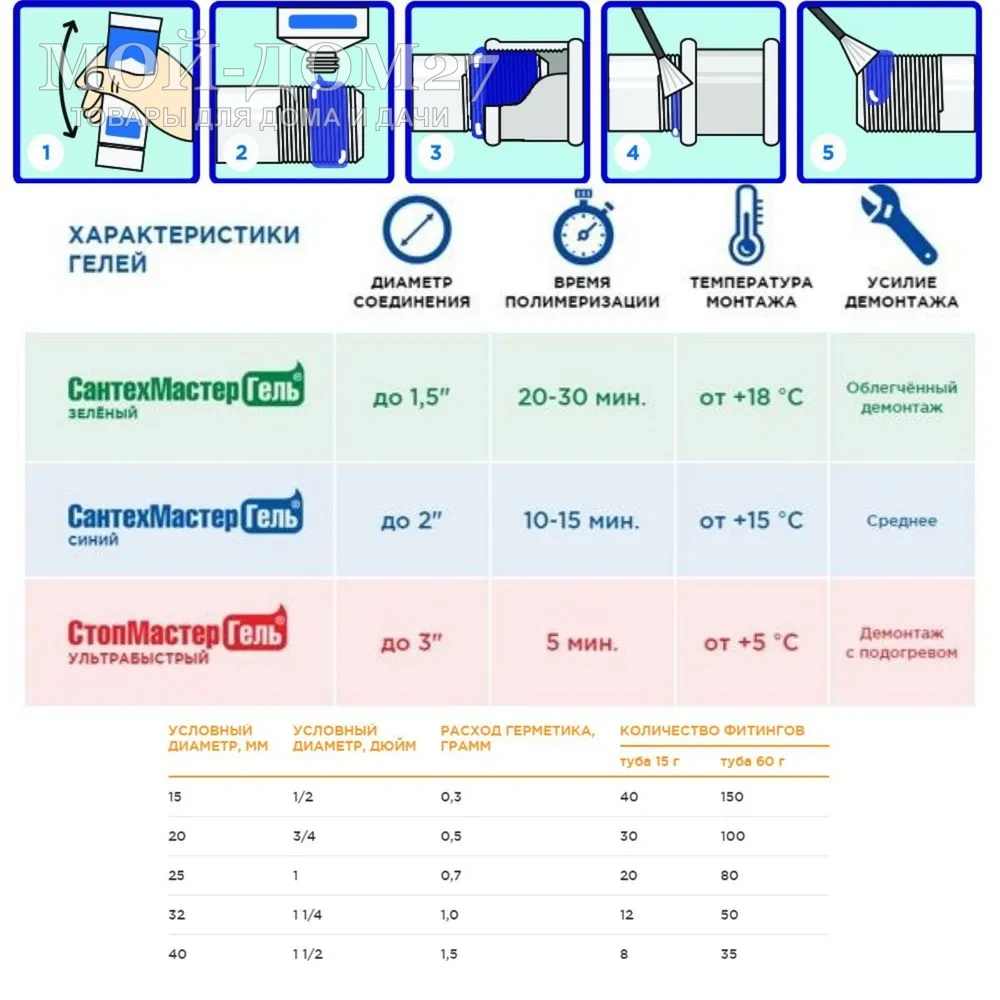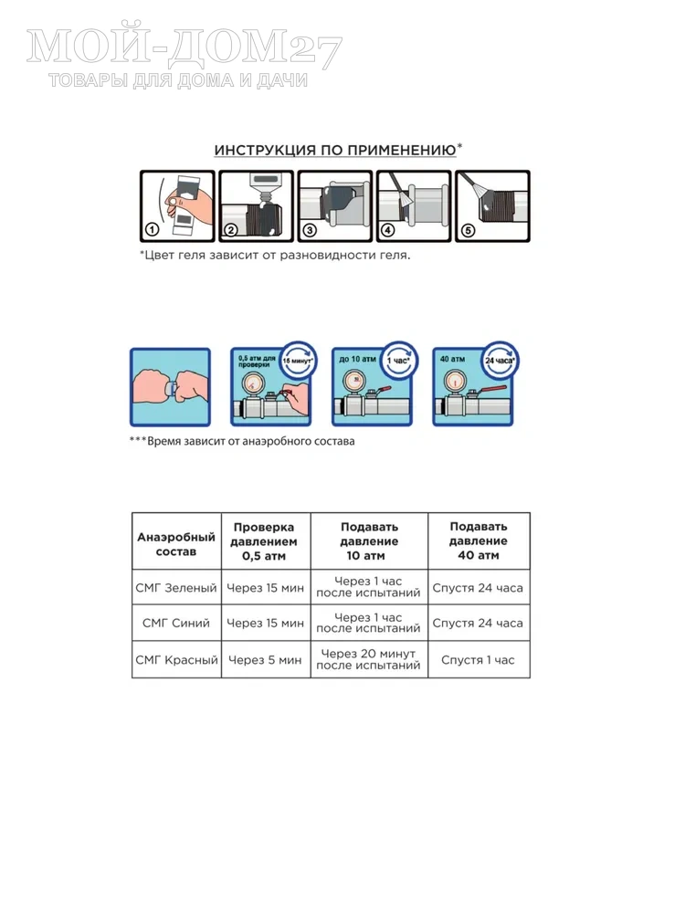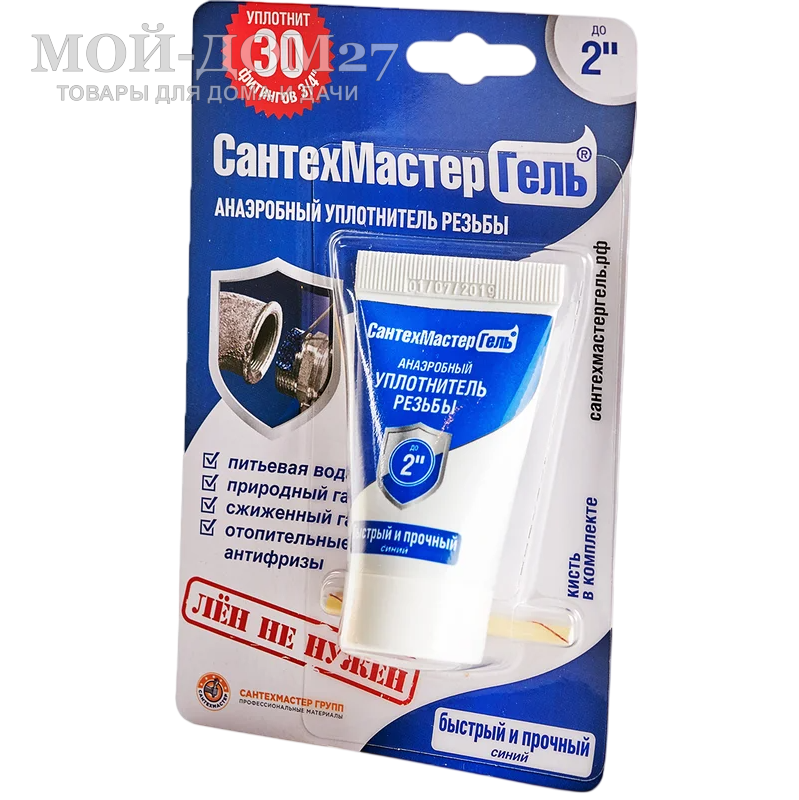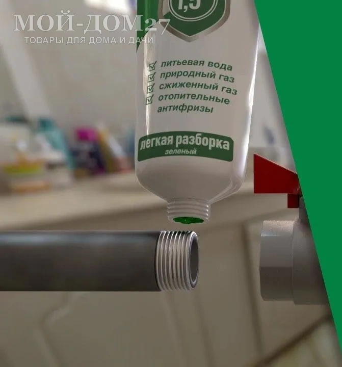 Анаэробный состав для герметизации резьбовых соединений трубопроводов для жидкостей и газов, неагрессивных к тефлону. После нанесения гель застывает, формируется уплотненное покрытие, устойчивое к разным средам и климатическим условиям (от -60 до +150 градусов):