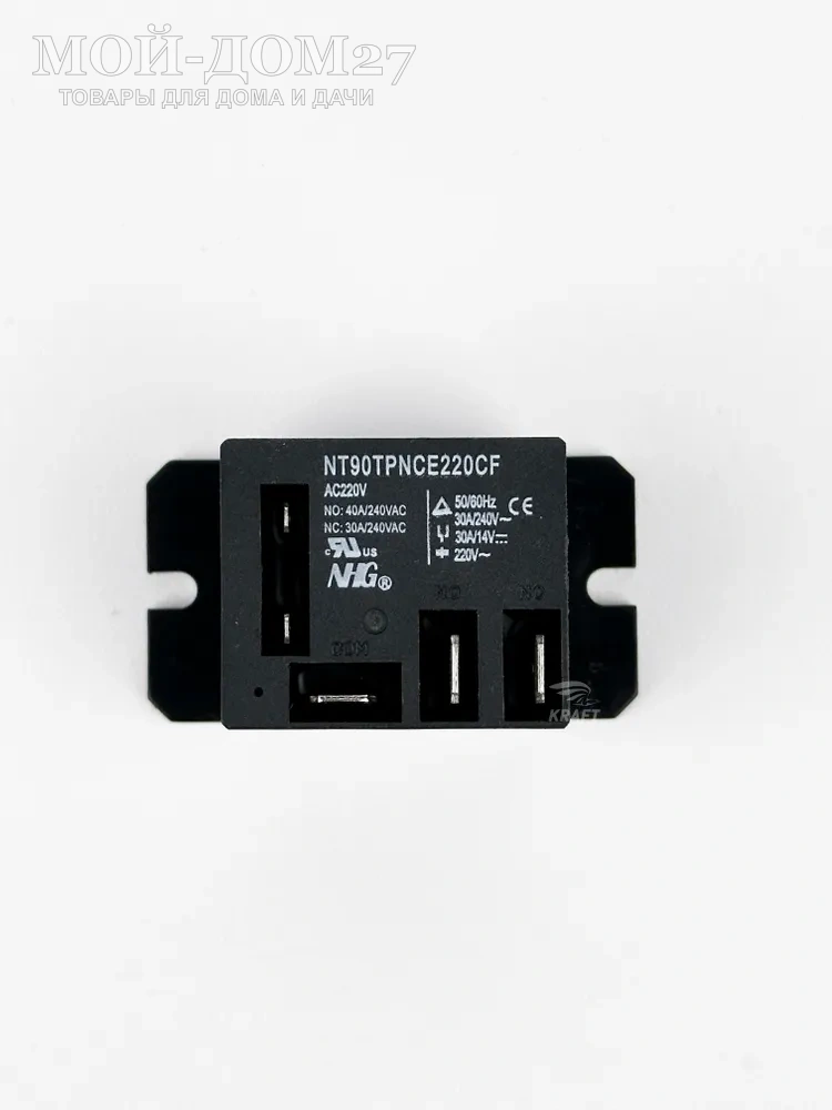 Номинальная нагрузка на контакты NO: 40A/240В АС, 30В DC; NC: 30А/240В АС, 30В DC (0.9Вт)