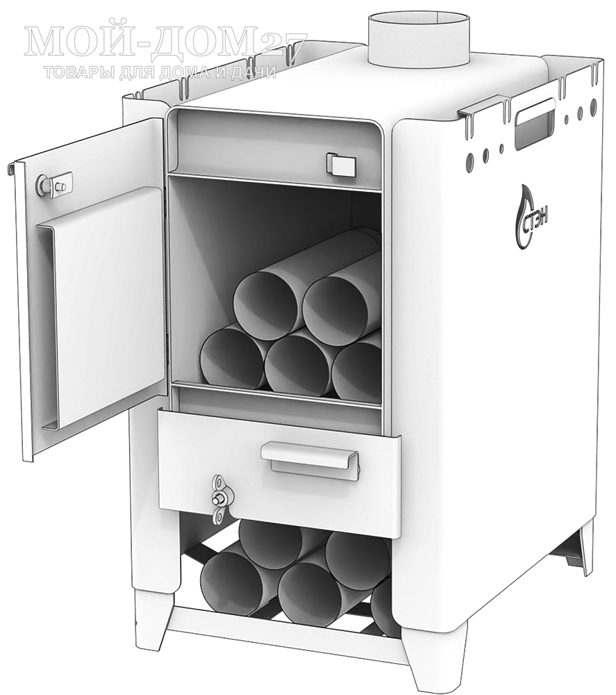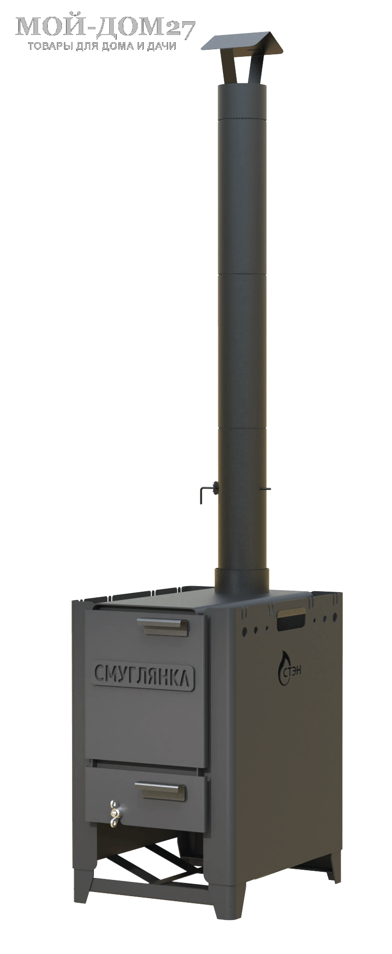 Отопительная печь «Смуглянка» предназначена для отопления палаток, блиндажей, КУНГов, бытовок, вагончиков, землянок. Печь-буржуйка «Смуглянка-4» имеет цельносварной корпус из стали толщиной 3мм. Вокруг корпуса печи находятся защитные экраны, образующие с ним три конвективных канала, усиливающих циркуляцию воздуха и ускоряющих обогрев помещения.