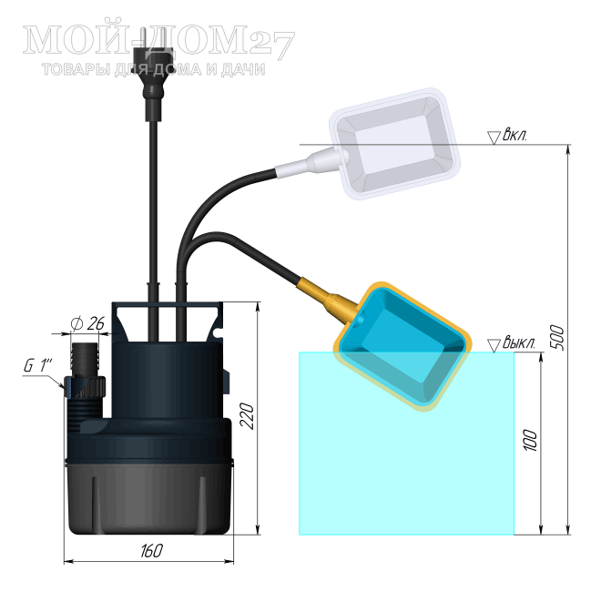 Насосы имеют герметичный корпус, могут работать частично или полностью погруженными в воду (глубина погружения в перекачиваемую жидкость до 5 метров).