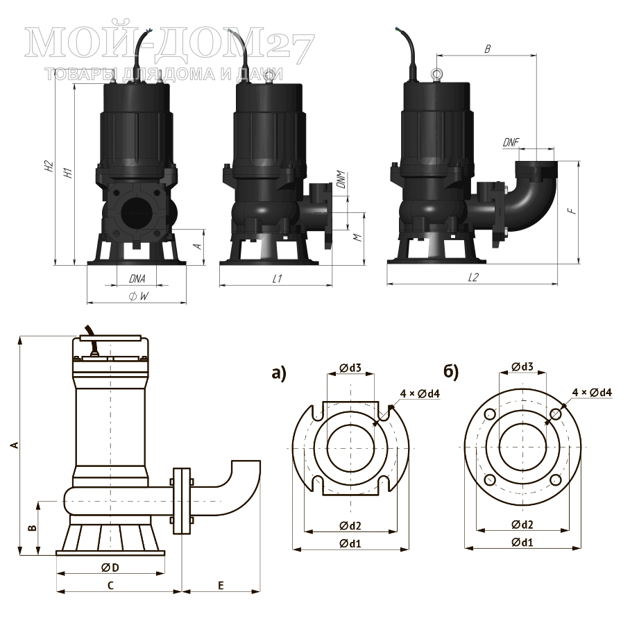 Погружные дренажные насосы FEKAMAX — с фланцевым присоединением, предназначены для откачки промышленных стоков заводов, городских очистных сооружений и канализационных станций, строительных и сельскохозяйственных объектов и т.п.