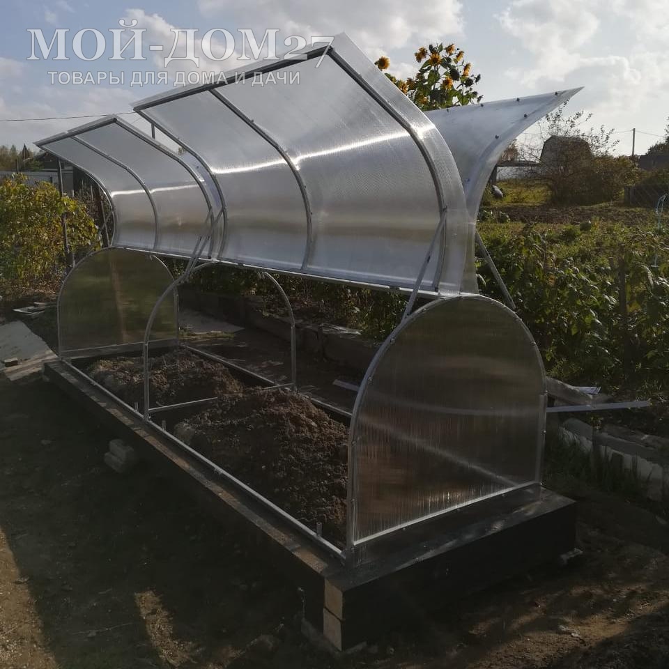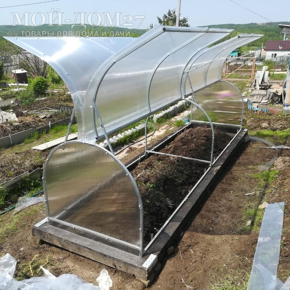 - Продолжительный период эксплуатации – больше 10 лет, парник Бабочка изготовлен из оцинкованной трубы 20*20 мм, более долговечен и сохраняет привлекательный вид намного дольше. Не требует демонтажа зимой.
