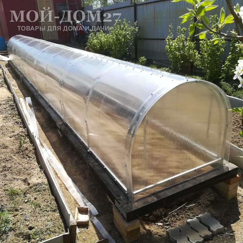 - Легок и прочен. Материал прочнее и гибче, например, стекла, при этом характеризуется хорошей гибкостью. Обеспечивается хорошая стойкость: может выдержать слой снега в десять сантиметров и порывы ветра до двадцати метров в секунду. Поэтому подобный парник спокойно может выдержать лютую зиму.