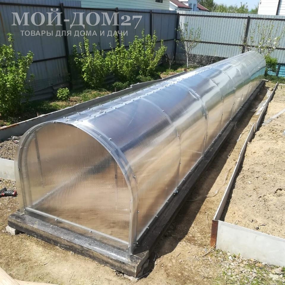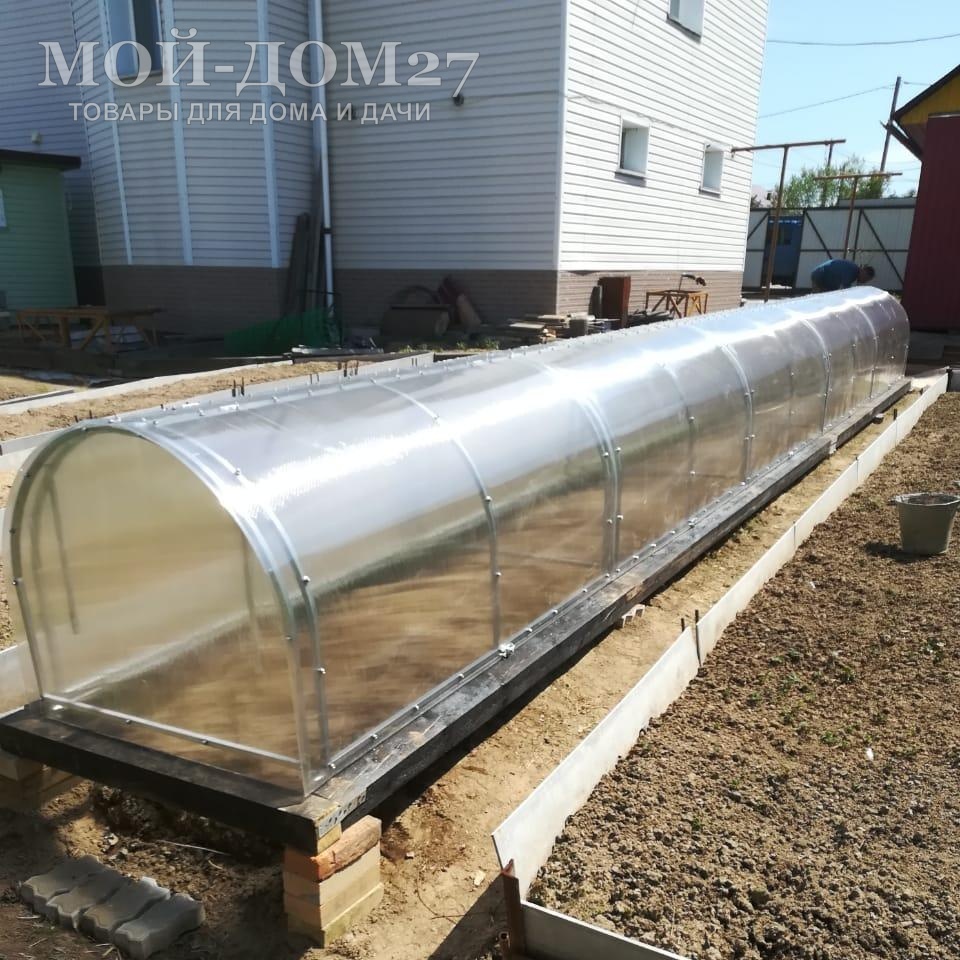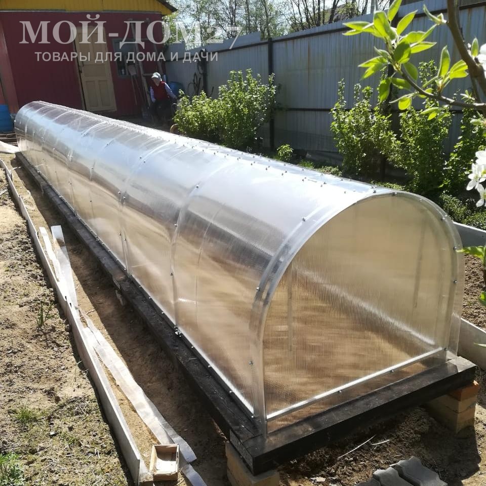 - Легок и прочен. Материал прочнее и гибче, например, стекла, при этом характеризуется хорошей гибкостью. Обеспечивается хорошая стойкость: может выдержать слой снега в десять сантиметров и порывы ветра до двадцати метров в секунду. Поэтому подобный парник спокойно может выдержать лютую зиму.