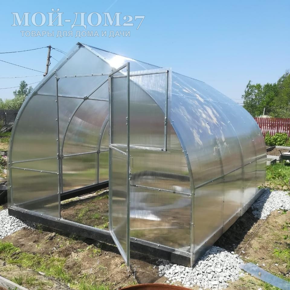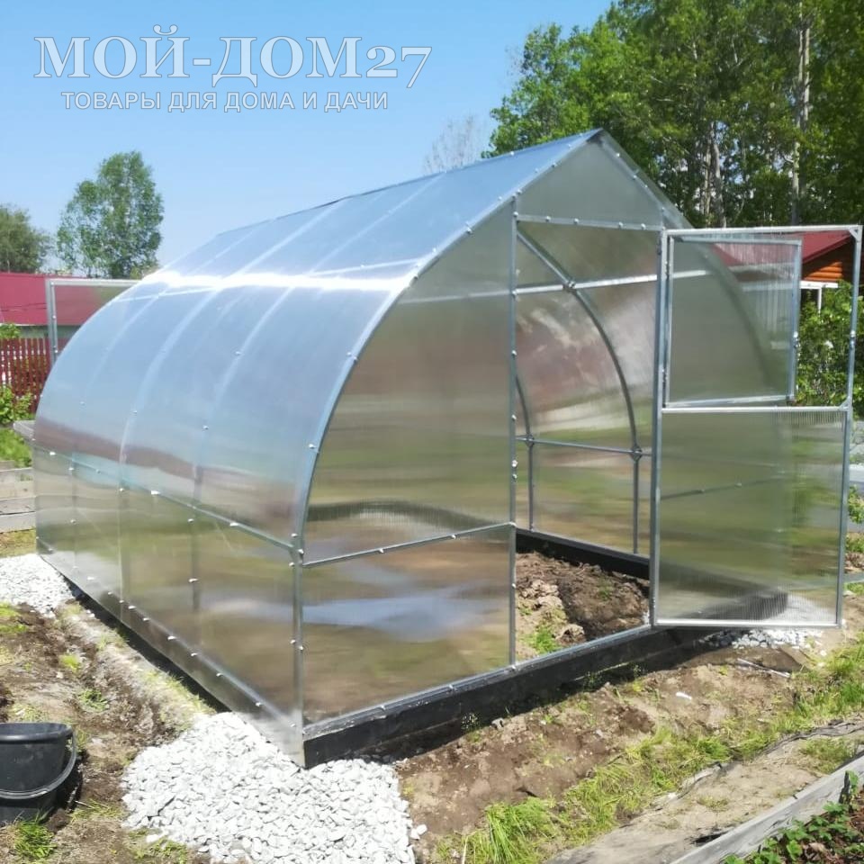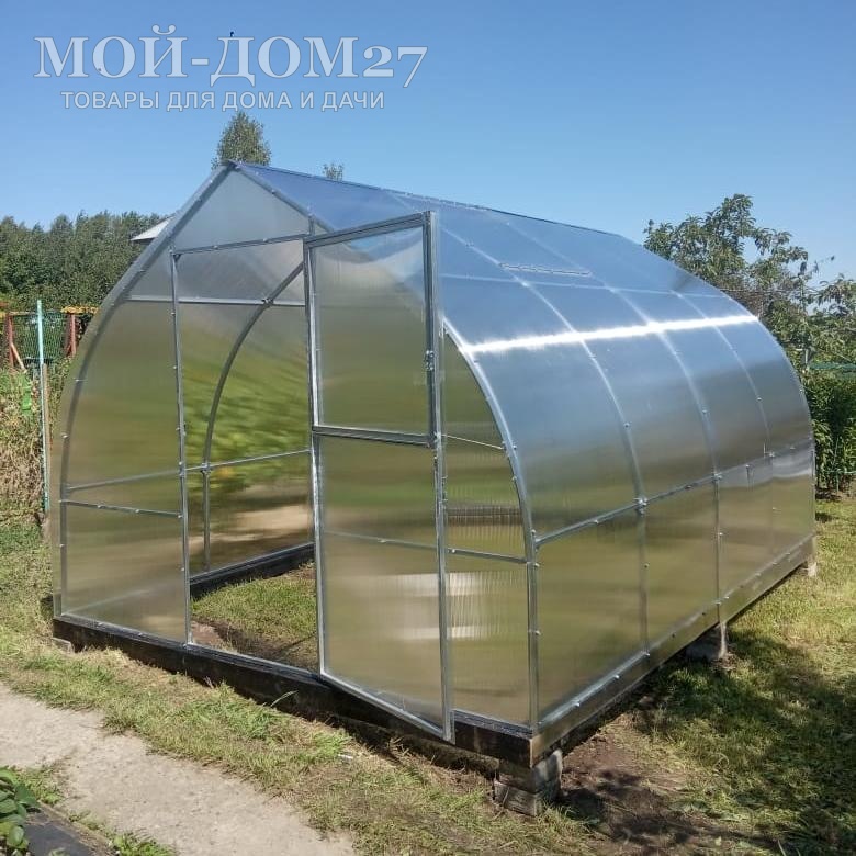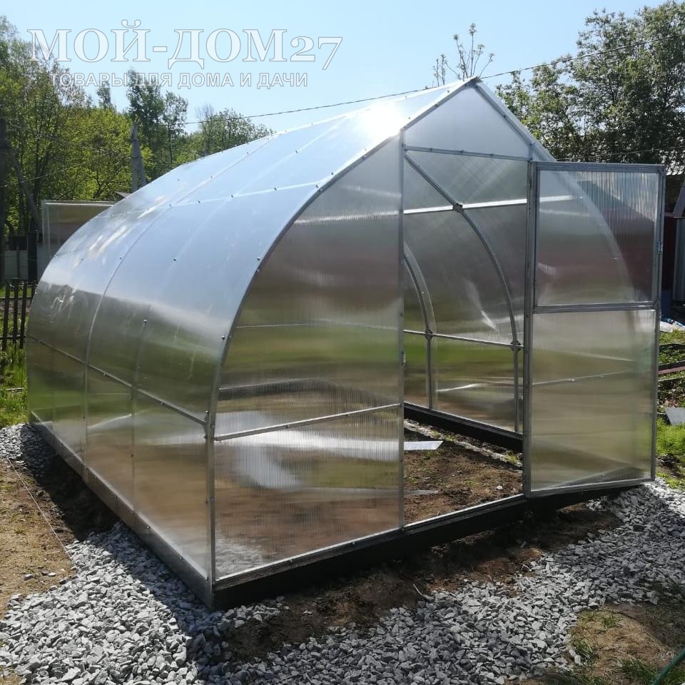 В каждом торце теплицы есть дверь и форточка для проветривания (две двери и две форточки). Ширина двери – 860 мм. Размер форточки в дверях: 805х765 ммВ комплект входит сотовый поликарбонат, разработанный специально для теплиц.