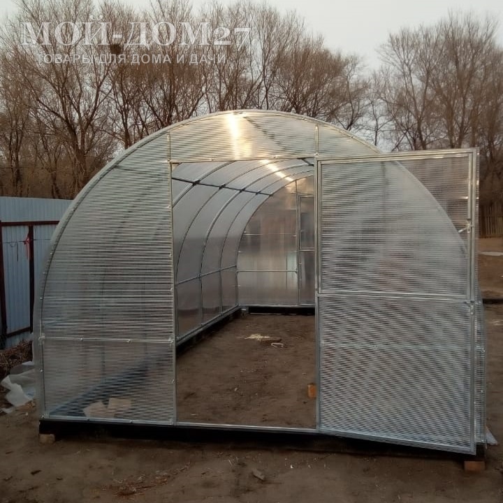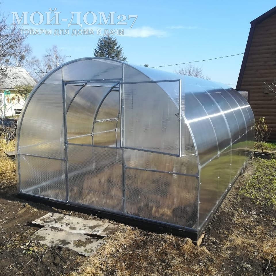 В комплект входит сотовый поликарбонат, разработанный специально для теплиц, толщиной 4 мм с эффективной защитой листа от ультрафиолета (UV-защита).