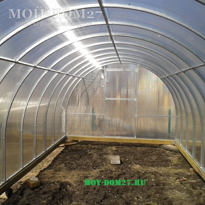В комплект входит сотовый поликарбонат, разработанный специально для теплиц, толщиной 4 мм с эффективной защитой листа от ультрафиолета (UV-защита).