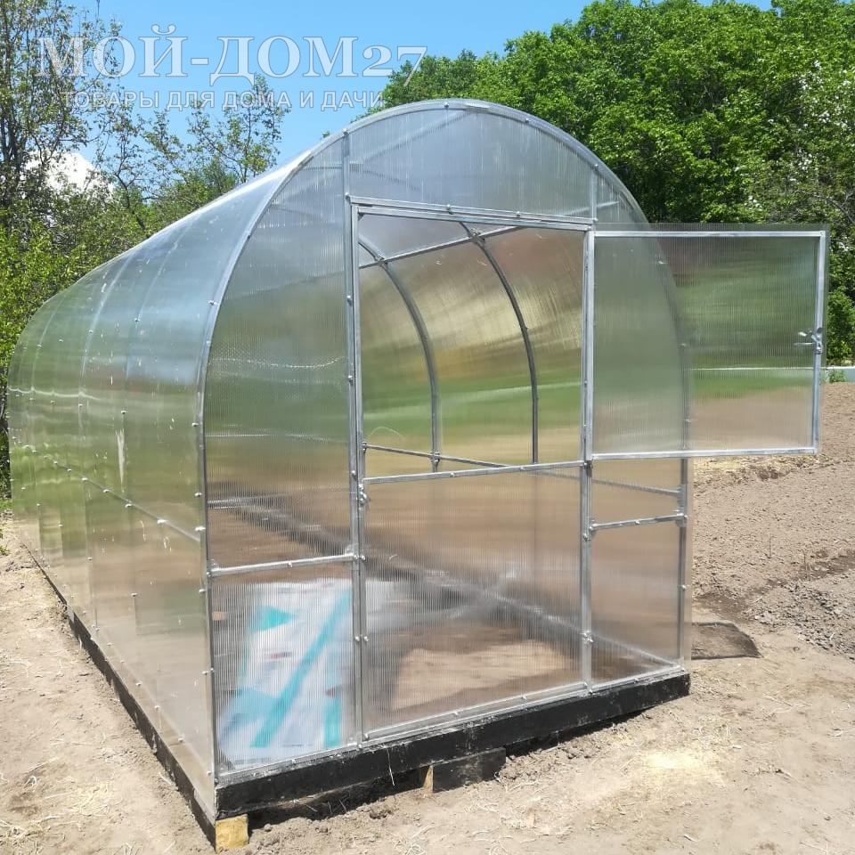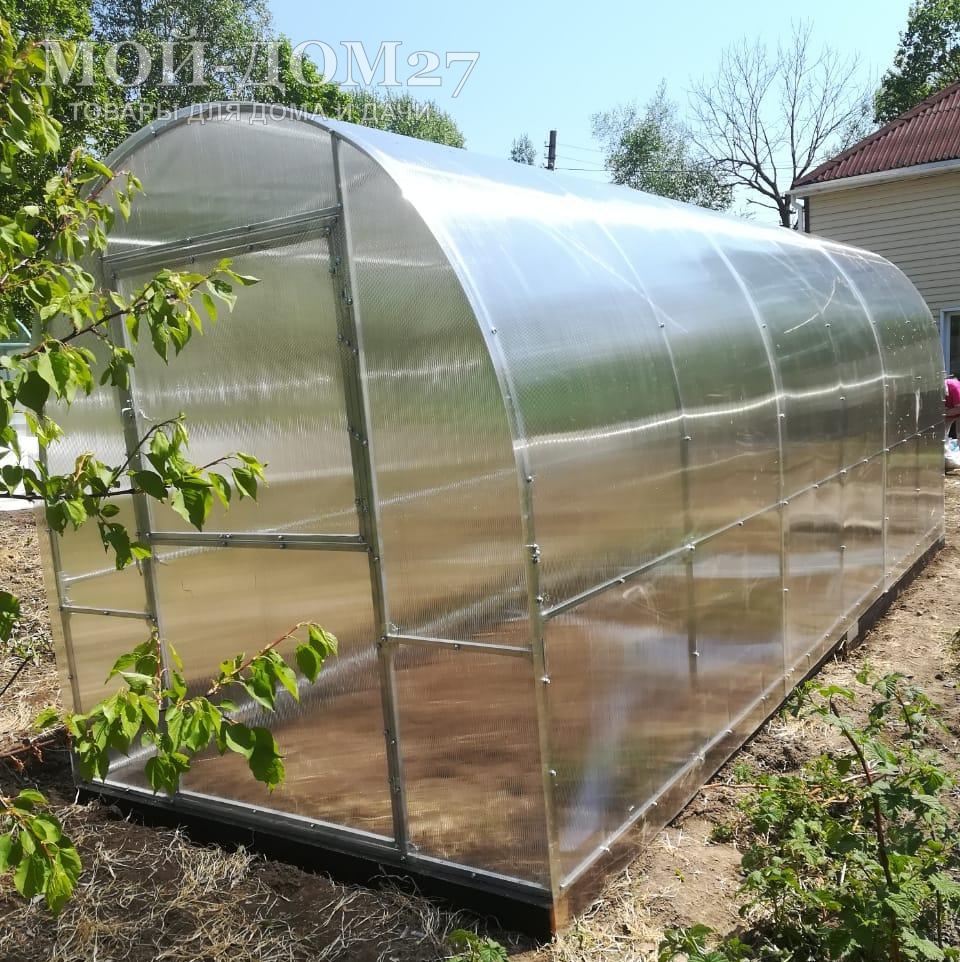 В комплект входит сотовый поликарбонат, разработанный специально для теплиц, толщиной 4 мм с эффективной защитой листа от ультрафиолета (UV-защита).