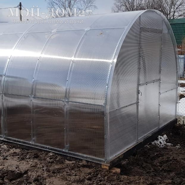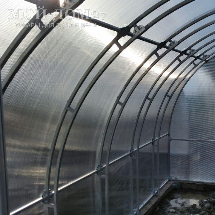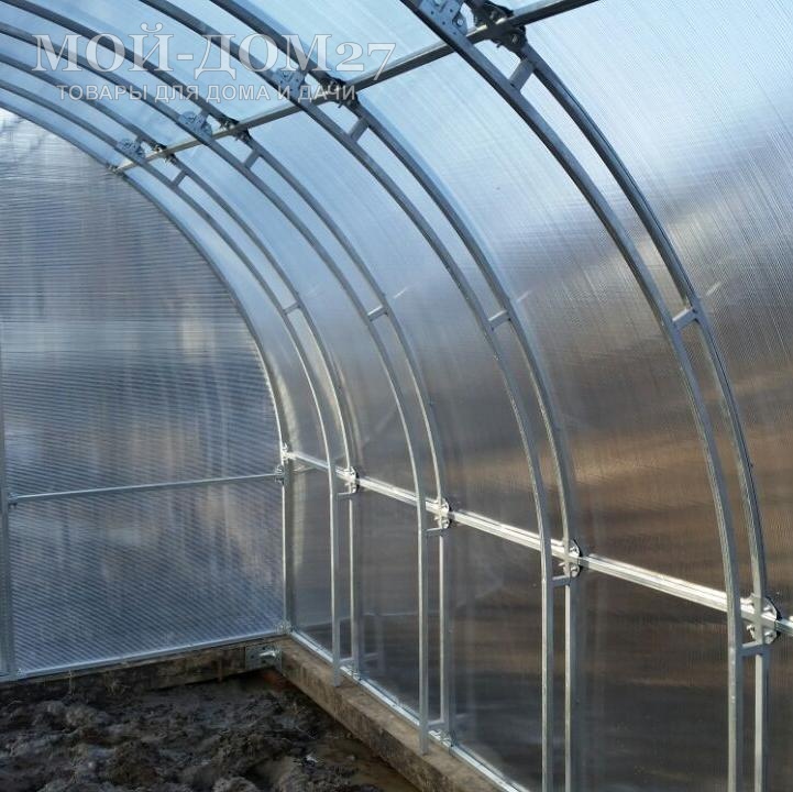 В комплект входит сотовый поликарбонат, разработанный специально для теплиц, толщиной 4 мм с эффективной защитой листа от ультрафиолета (UV-защита).