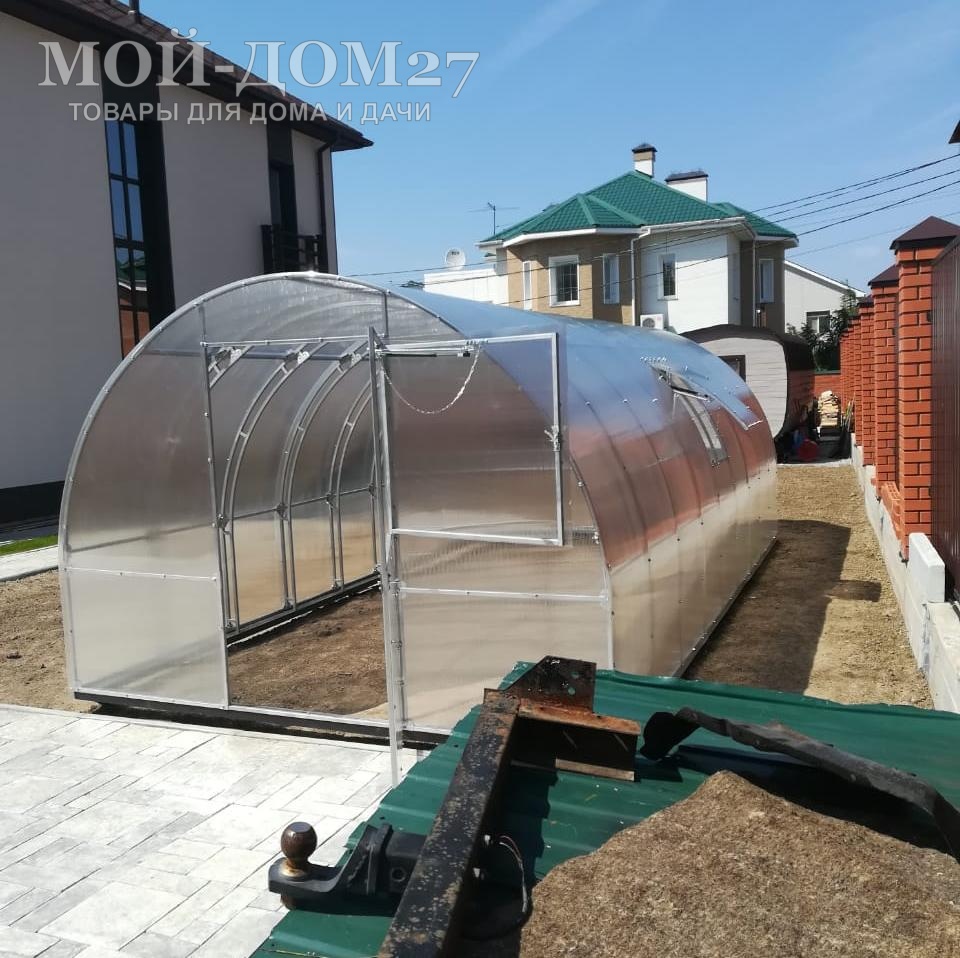 В комплект входит сотовый поликарбонат, разработанный специально для теплиц.