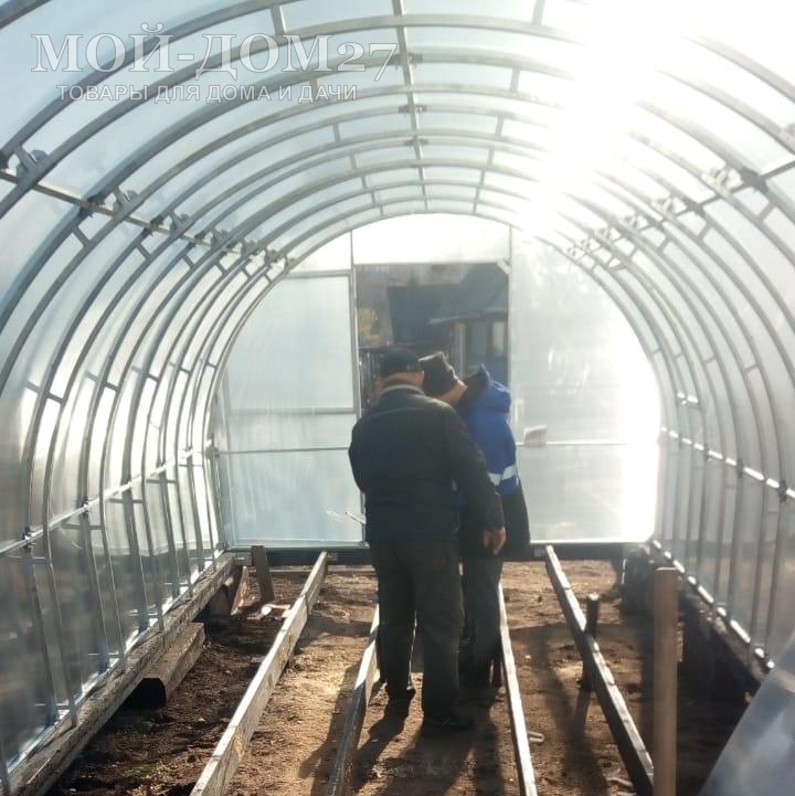 Теплица “СверхПрочная УСИЛЕННАЯ” на данный момент является одной из самых надежных теплиц представленных на Дальневосточном рынке. Конструкция отличается прочностью, долговечностью, имеет повышенный уровень износостойкости. Каждая из дуг теплицы выполняется из двойной сварной трубы с соединениями в виде перемычек (под дугой приварена вторая дуга, что обеспечивает дополнительную устойчивость к снеговым нагрузкам). Это оптимальный вариант для обеспечения устойчивости, стабильности конструкции. Между дугами расстояние сокращено: не 1 м, а всего 65 см, что обеспечивает как дополнительную жесткость конструкции так и дает дополнительную устойчивость к ветровым нагрузкам, благодаря увеличению ребер жесткости. Толщина дуг 1,2 мм