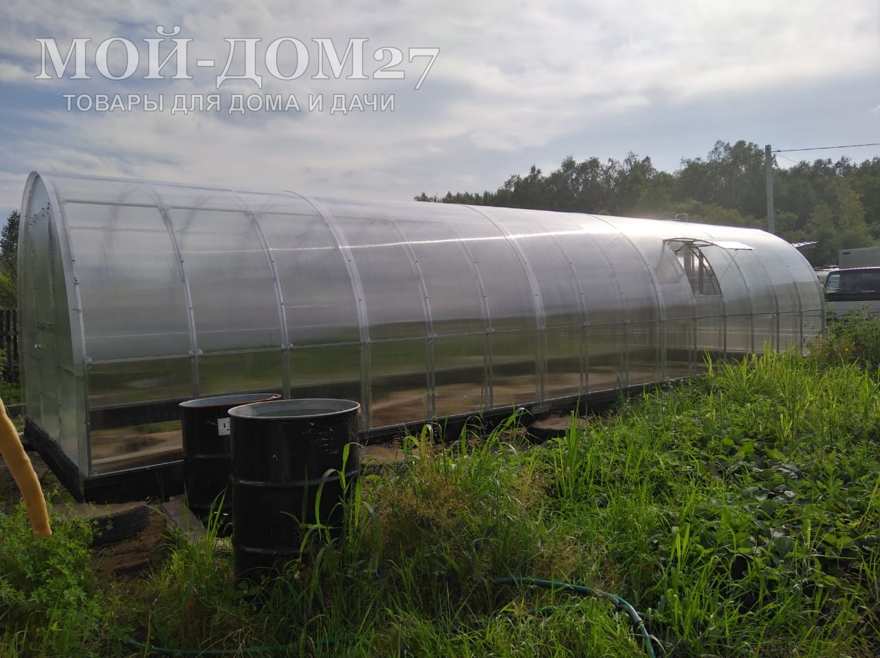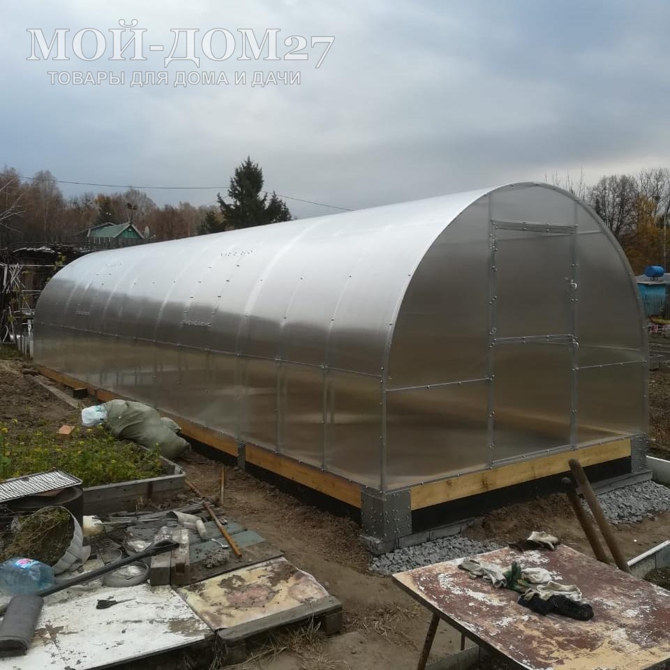 Теплица “СверхПрочная УСИЛЕННАЯ” на данный момент является одной из самых надежных теплиц представленных на Дальневосточном рынке. Конструкция отличается прочностью, долговечностью, имеет повышенный уровень износостойкости. Каждая из дуг теплицы выполняется из двойной сварной трубы с соединениями в виде перемычек (под дугой приварена вторая дуга, что обеспечивает дополнительную устойчивость к снеговым нагрузкам). Это оптимальный вариант для обеспечения устойчивости, стабильности конструкции. Между дугами расстояние сокращено: не 1 м, а всего 65 см, что обеспечивает как дополнительную жесткость конструкции так и дает дополнительную устойчивость к ветровым нагрузкам, благодаря увеличению ребер жесткости. Толщина дуг 1,2 мм