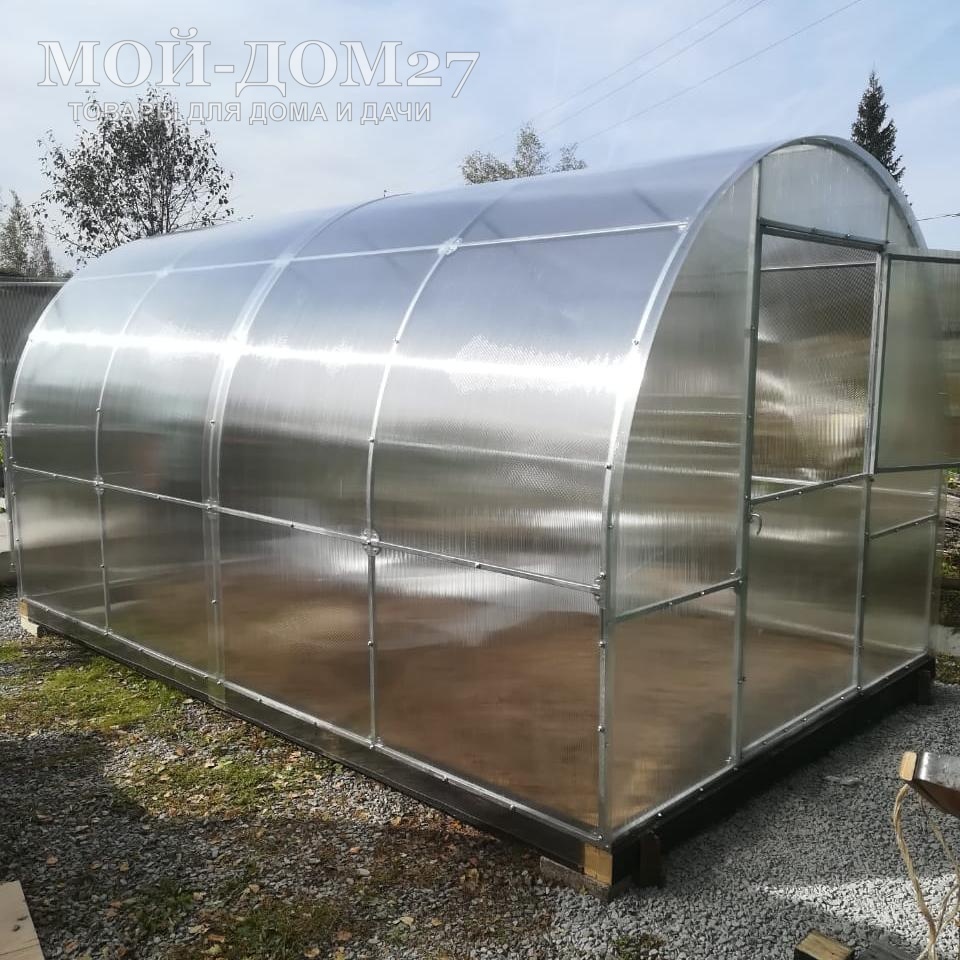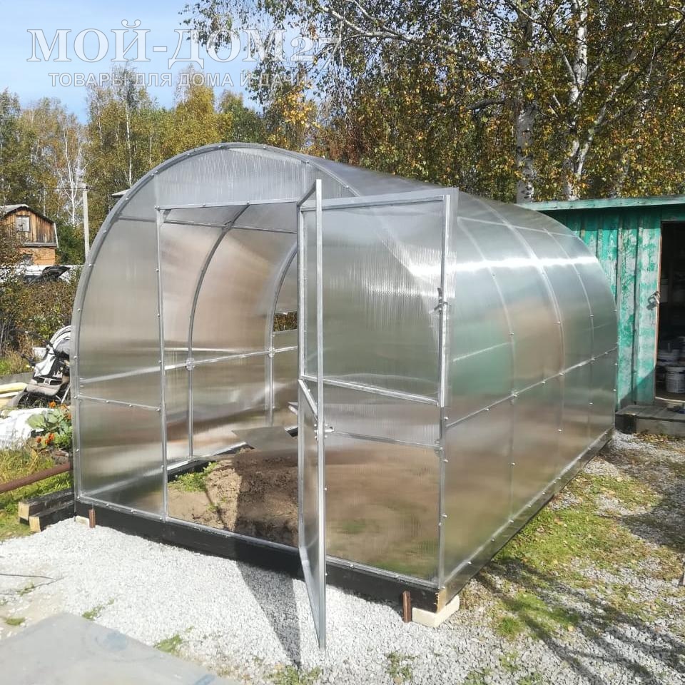 В комплект входит сотовый поликарбонат, разработанный специально для теплиц, толщиной 4 мм с эффективной защитой листа от ультрафиолета (UV-защита).