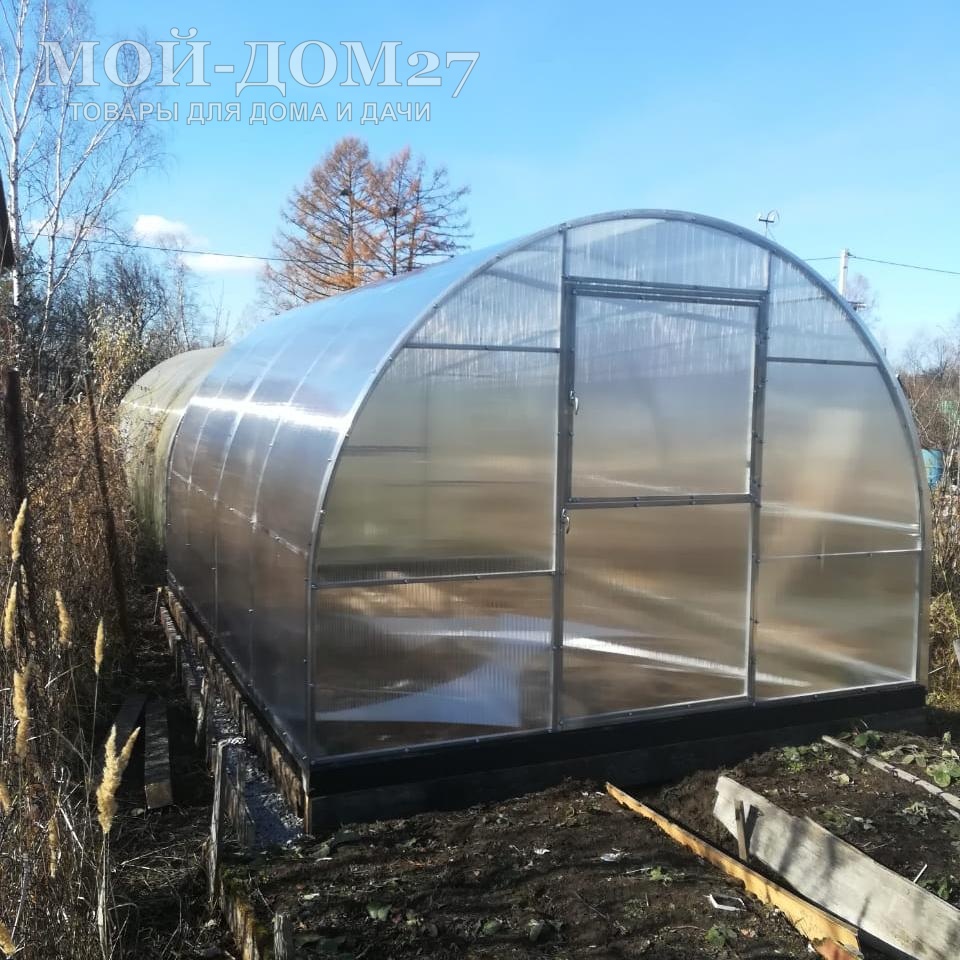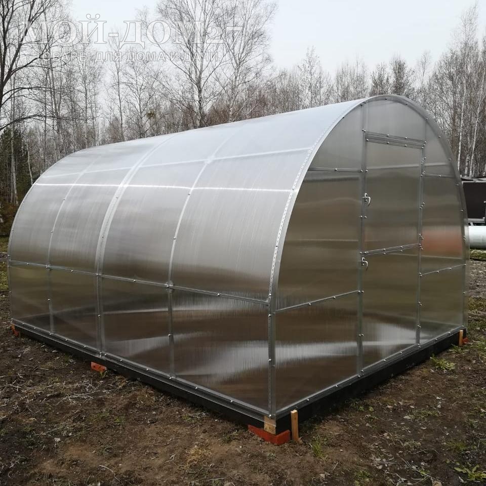 Ширина – 3,01 метра (Устанавливается по наружному краю фундамента, для того чтобы поликарбонат монтируемый по дуге теплицы не обрезался и заходил с нахлестом на фундамент. Благодаря чему удастся избежать щели между фундаментом и поликарбонатом, т.к. поликарбонат в зависимости от температуры сужается и расширяется. Так же вся влага будет стекать за фундамент)