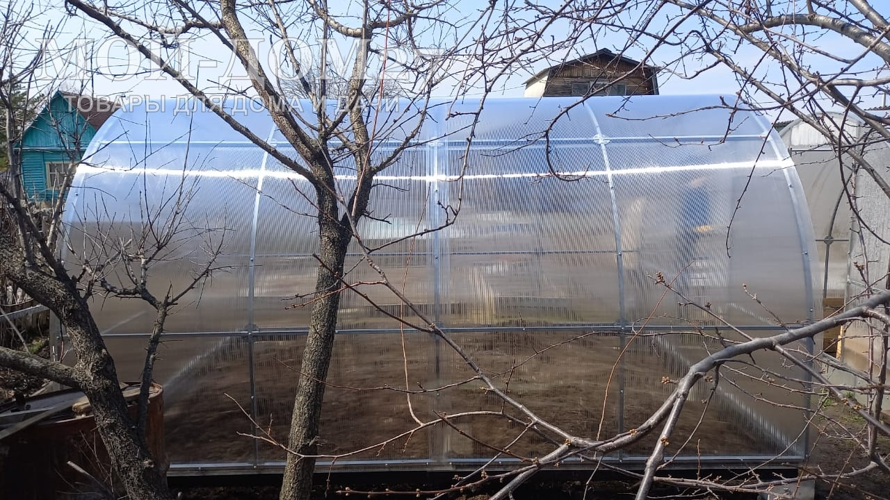 Теплица не требует подпорки, но мы рекомендуем на зиму ставить деревянные подпорки под дугу в центре у любой теплицы длиной свыше 8 метров. Т.к. из-за удаленности торцов друг от друга жесткость конструкции уменьшается, еще и брус сращивается между собой. Получается, что в месте сращивания бруса возможно проседание грунта и как следствие проседание дуги относительно других дуг, что образовывает ямку для скапливания снега.