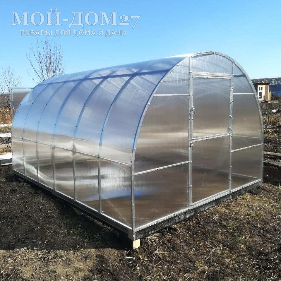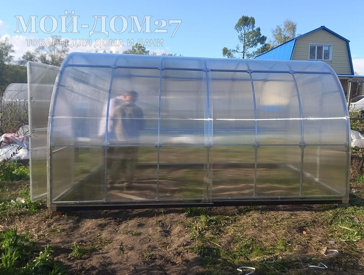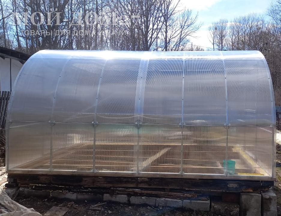 Теплица не требует подпорки, но мы рекомендуем на зиму ставить деревянные подпорки под дугу в центре у любой теплицы длиной свыше 8 метров. Т.к. из-за удаленности торцов друг от друга жесткость конструкции уменьшается, еще и брус сращивается между собой. Получается, что в месте сращивания бруса возможно проседание грунта и как следствие проседание дуги относительно других дуг, что образовывает ямку для скапливания снега.