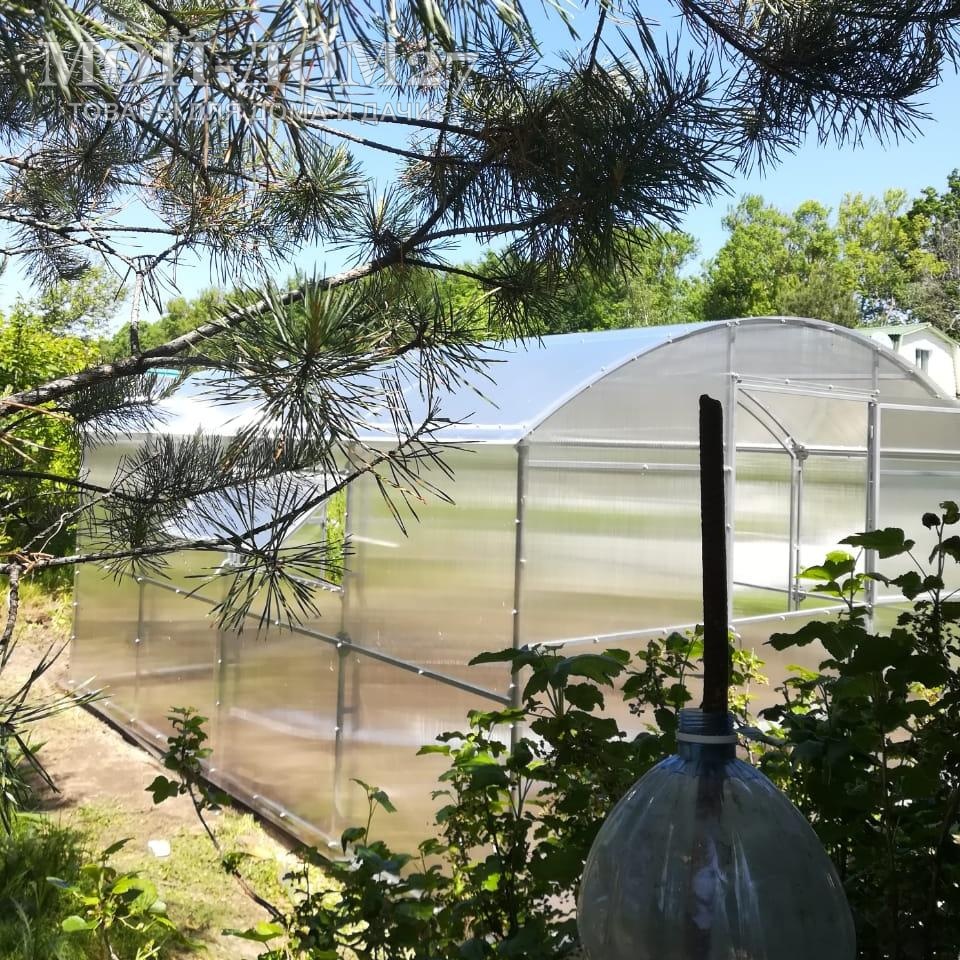 В комплект входит сотовый поликарбонат, разработанный специально для теплиц, толщиной 4 мм с эффективной защитой листа от ультрафиолета (UV-защита).