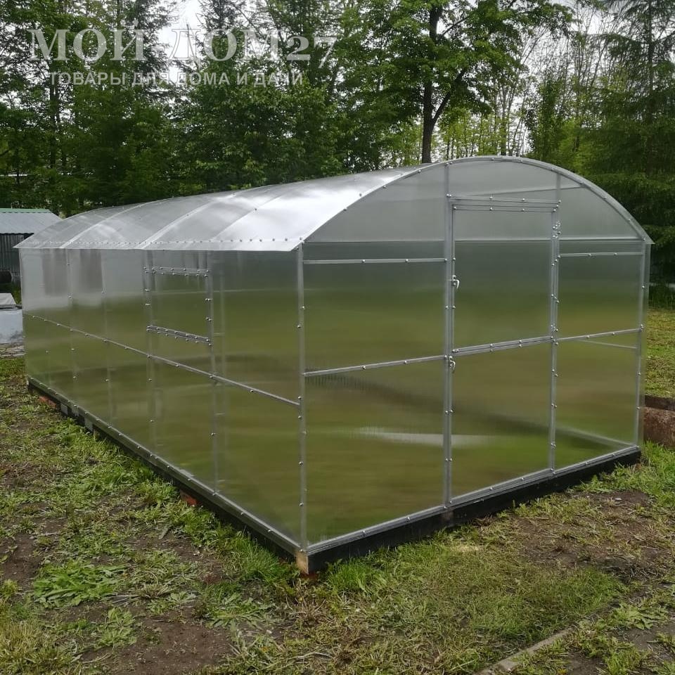 В комплект входит сотовый поликарбонат, разработанный специально для теплиц, толщиной 4 мм с эффективной защитой листа от ультрафиолета (UV-защита).