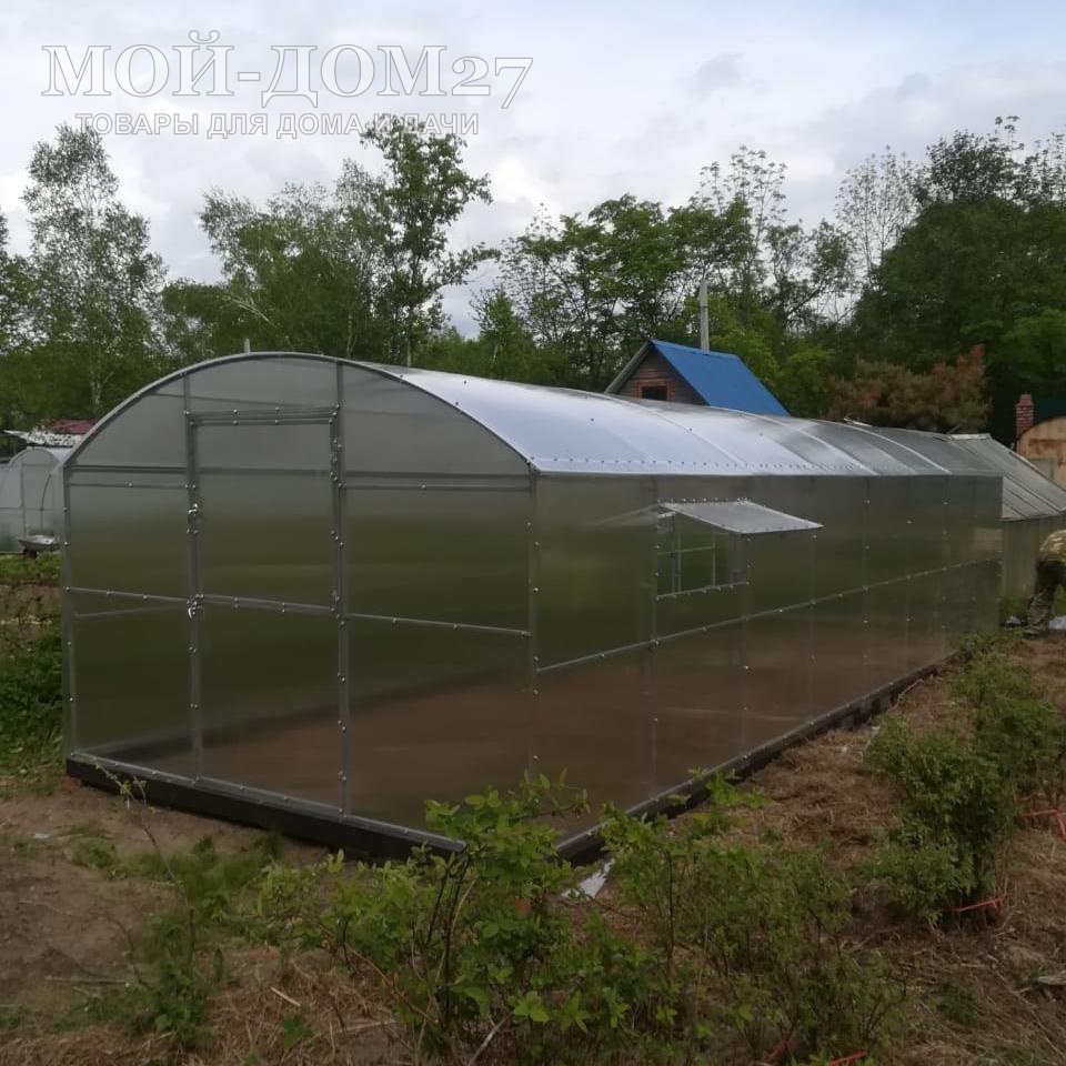 Теплица СверхПрочная Вагон имеет больше пространства внутри за счет прямых стенок и растения можно садить почти вплотную к стенкам. Взрослому растению уже не будет мешать изгиб дуги, как в обычных арочных теплицах. На данный момент теплица является одной из самых надежных теплиц представленных на Дальневосточном рынке. Конструкция отличается прочностью, долговечностью, имеет повышенный уровень износостойкости. Каждая из дуг теплицы выполняется из двойной сварной трубы с соединениями в виде перемычек (под дугой приварена вторая дуга, что обеспечивает дополнительную устойчивость к снеговым нагрузкам). Это оптимальный вариант для обеспечения устойчивости, стабильности конструкции.Помимо этого, за дополнительные дуги-фермы можно легко подвязывать растения, не опасаясь провисания теплицы.