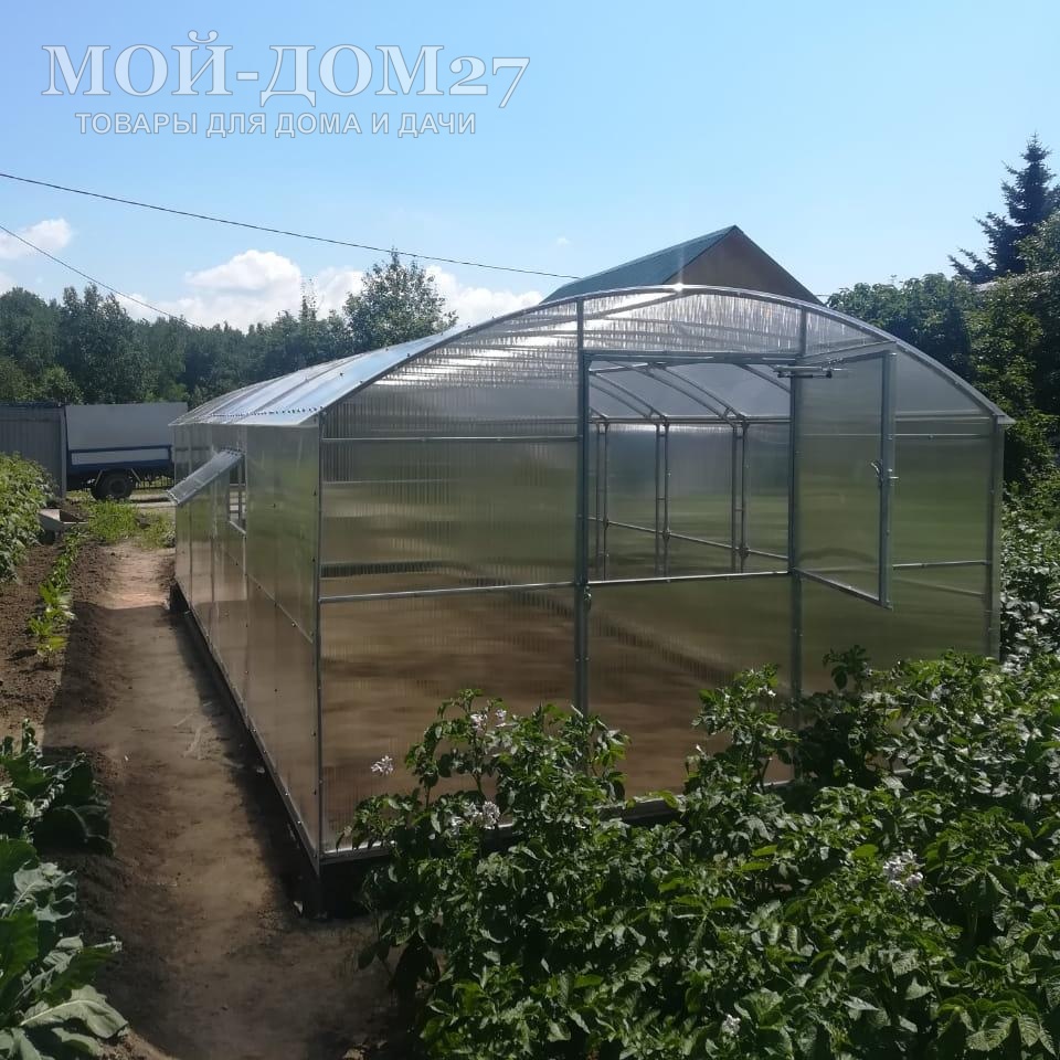 В комплект входит сотовый поликарбонат, разработанный специально для теплиц.