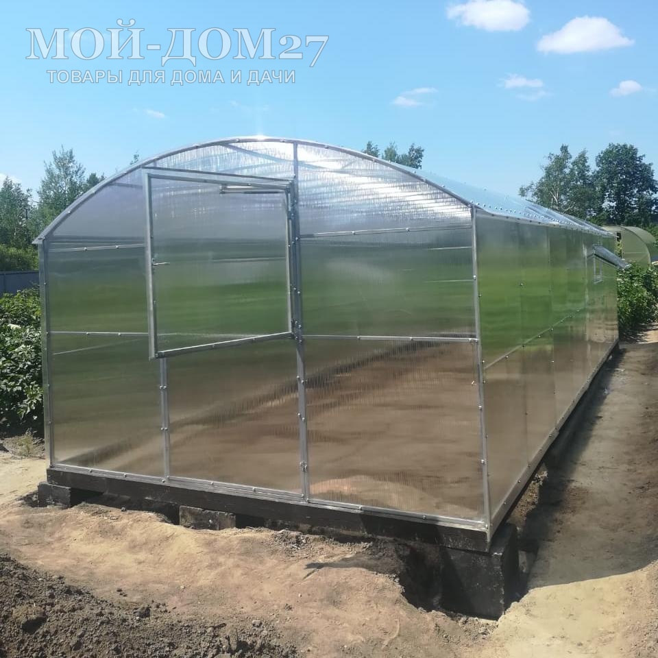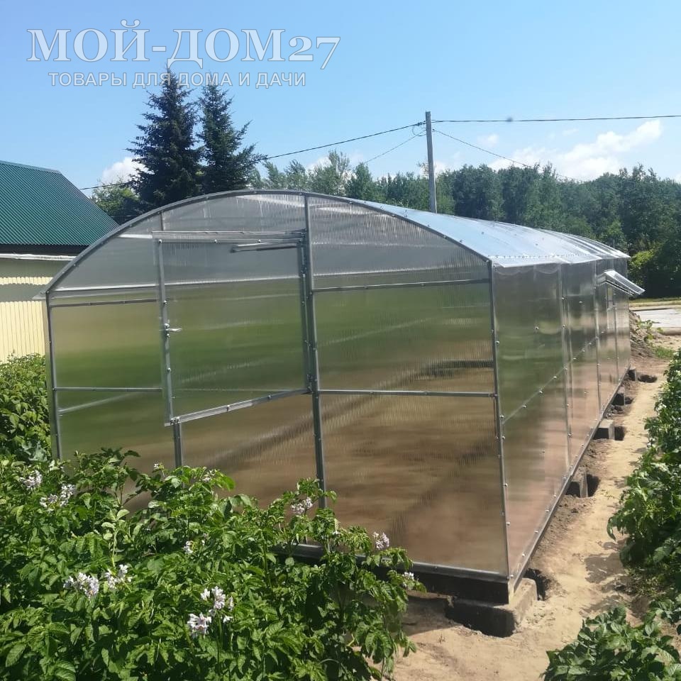 В комплект входит сотовый поликарбонат, разработанный специально для теплиц, толщиной 4 мм с эффективной защитой листа от ультрафиолета (UV-защита).