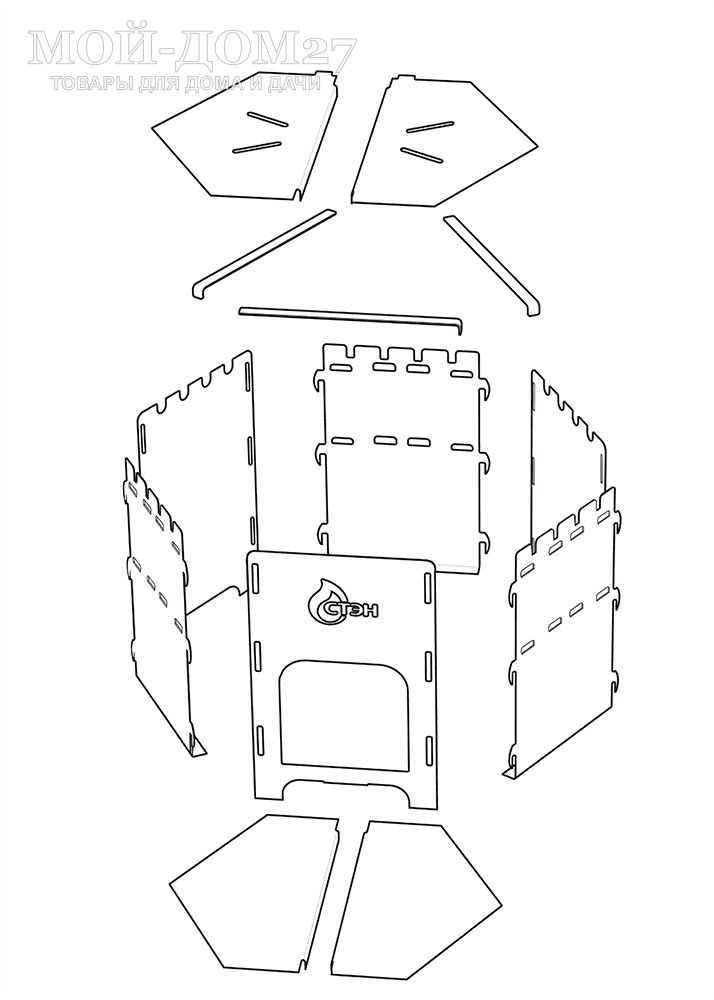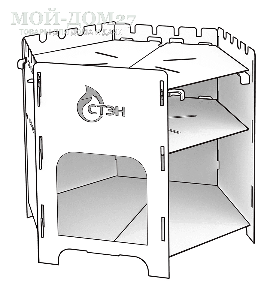 Изготавливается из стали толщиной 2 мм и комплектуется сумкой для переноски.